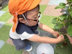 2025年05月19日 いちごの収穫 5月14、19日にいちごの収穫を行いました。 プランターに実った赤いいちごを見つけると、 嬉しそうにとってくれました。 収穫したいちごはおやつでいただきました。 甘いいちごのにおいも感じることができましたよ。 日野南すみれ保育園 PREV子どもの日の集い NEXT春の遠足