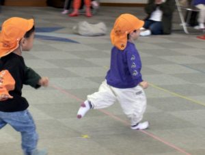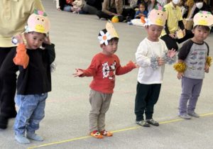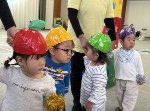 0,1歳児はフルーツの帽子、2歳児ははなかっぱのお面をかぶり、かわいかったですね。